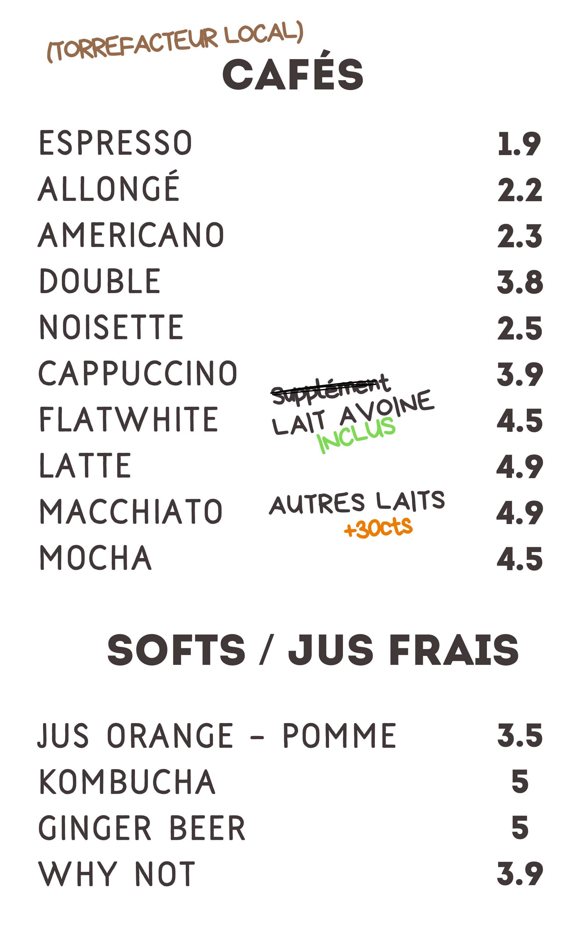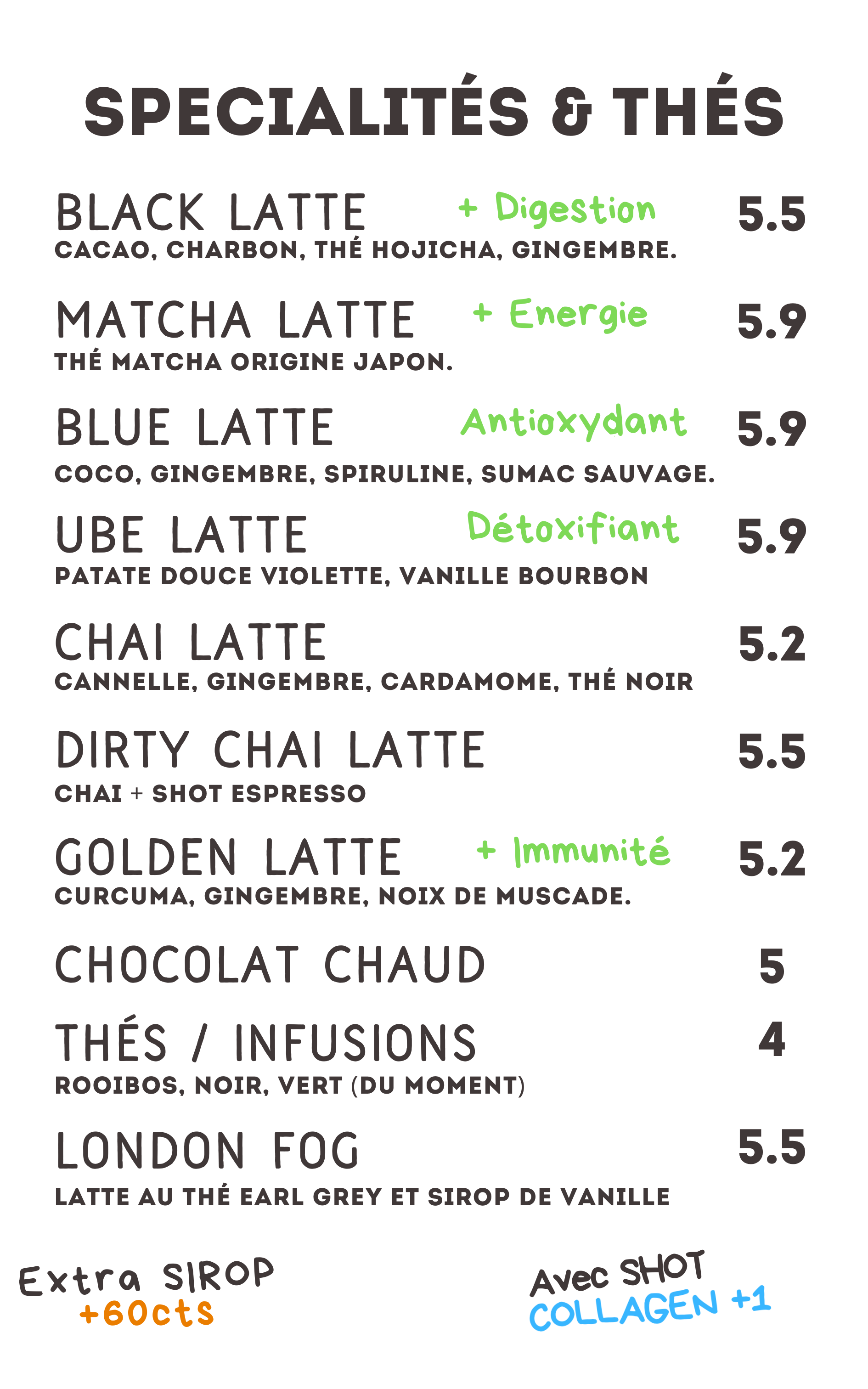 Venez profitez d’un espace chaleureux et baigné de soleil, en intérieur ou en terrasse pour savourer votre café en plein air. Nous proposons une offre variée de boissons chaudes, froides, de jus frais et de gourmandises saines, le tout préparé maison avec des produits de qualité. Vous y trouverez également des offres petit dej’, gouter et même de quoi vous restaurer pour une pause déjeuner de qualité ! Des options sang gluten et vegan sont disponibles.